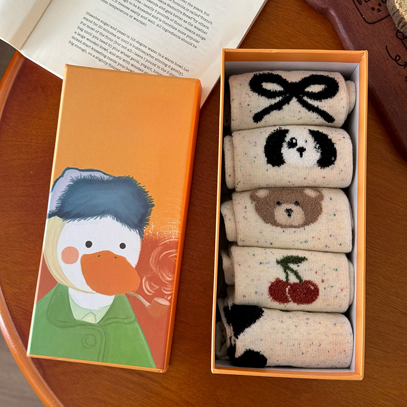 可爱袜子女中筒袜点子纱春秋冬款 小熊ins潮韩国卡通日系彩点长袜