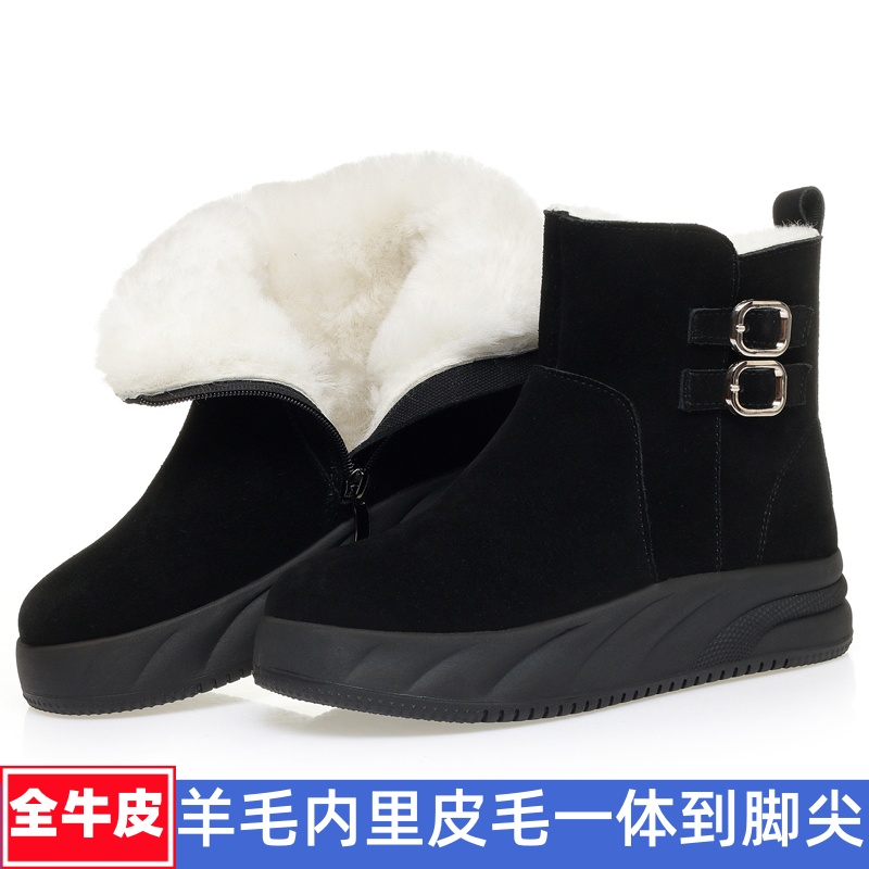 加绒加厚东北大棉鞋 女鞋 妈妈真皮毛一体羊毛靴子 冬季 雪地靴女款