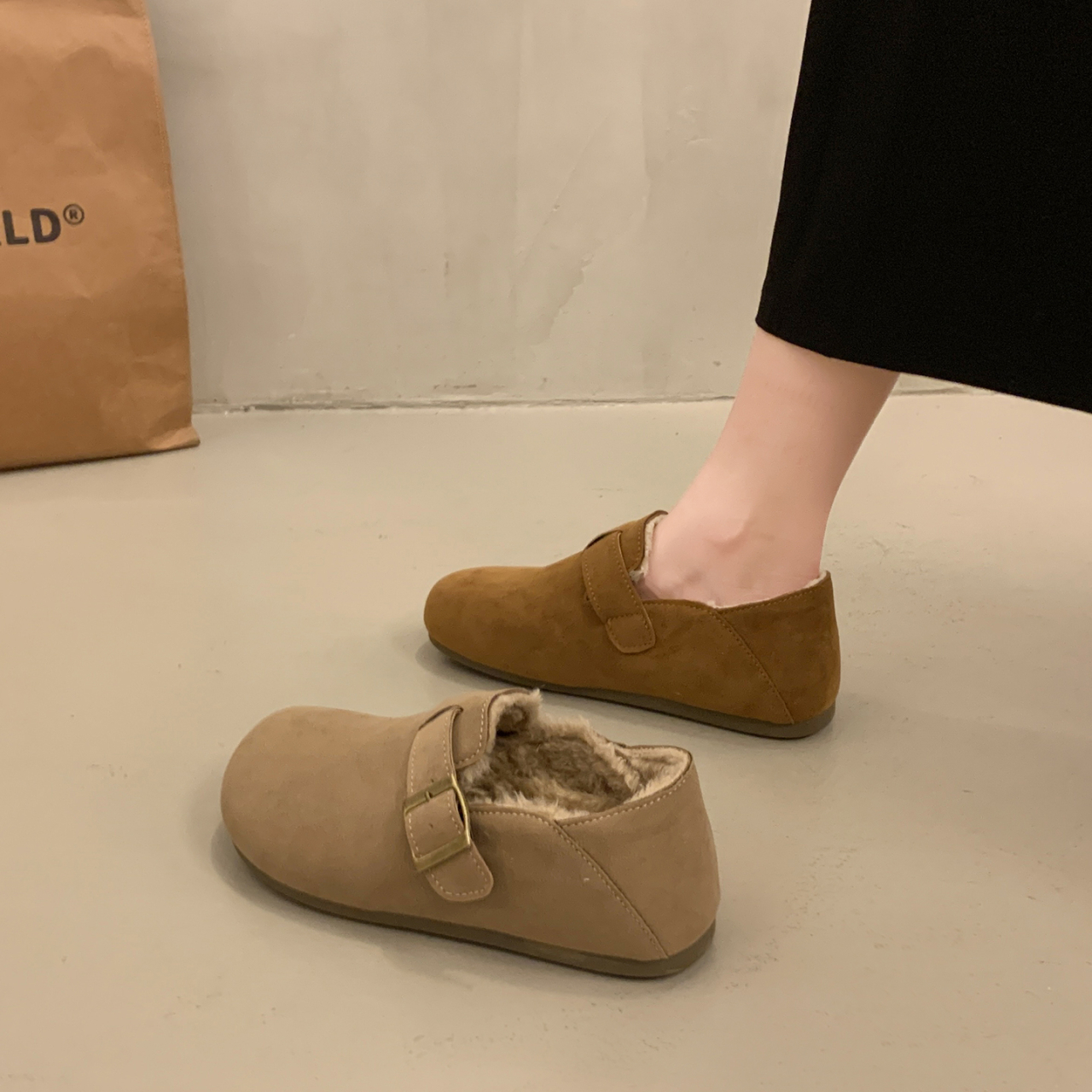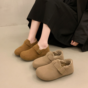 保暖博肯棉鞋 勃肯雪地靴女2025冬季 34码 加绒加厚一脚蹬乐福鞋 新款