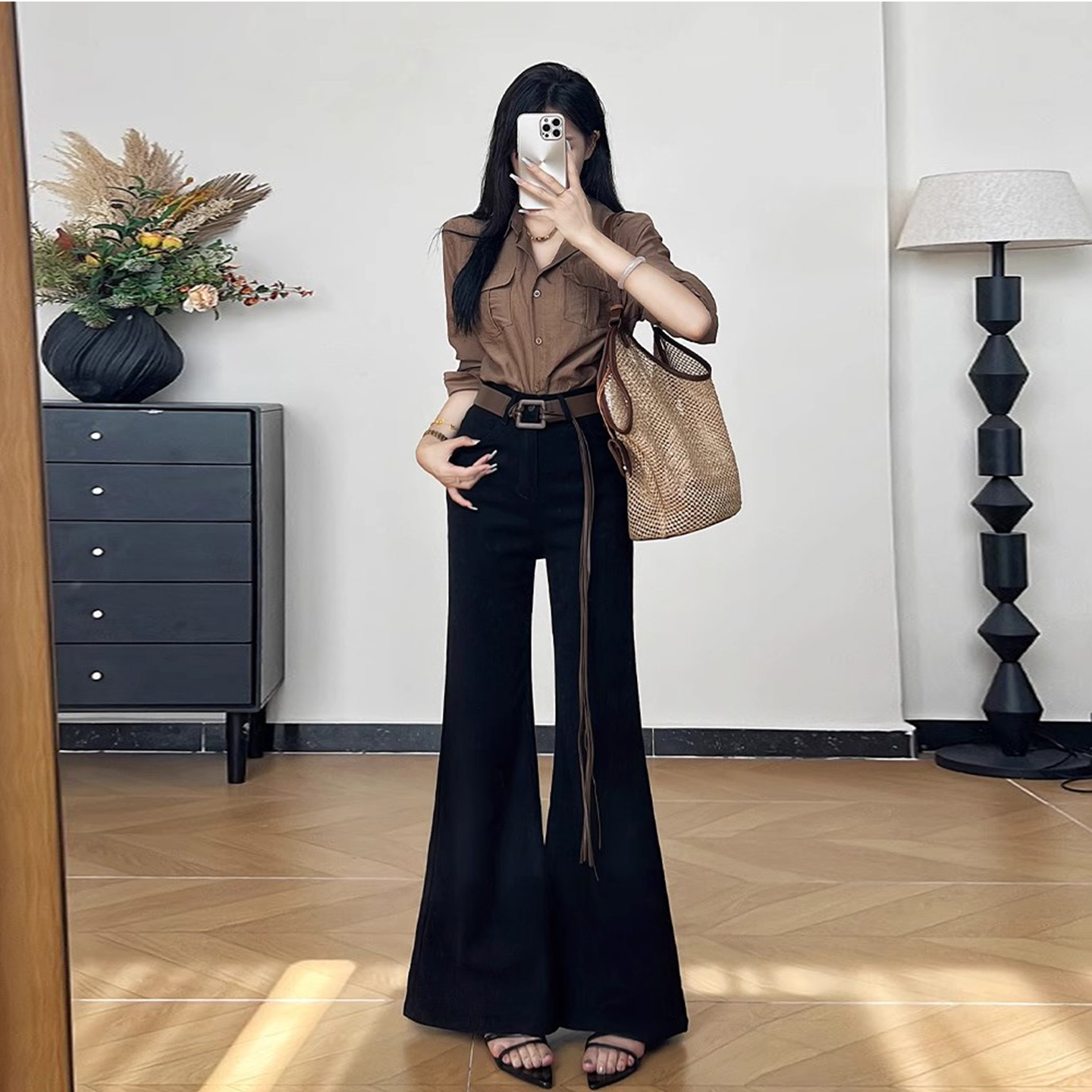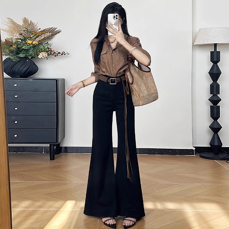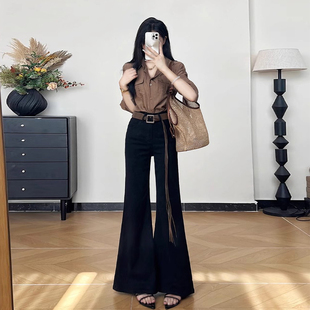 170垂感拖地裤 高腰直筒喇叭裤 子 女胖mm大码 高个子加长阔腿牛仔裤