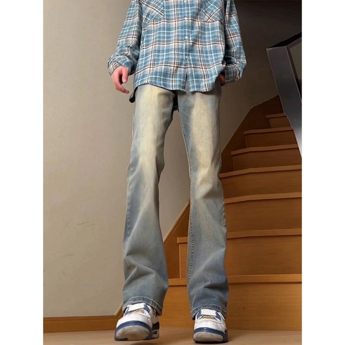 子潮牌高级感微喇裤 cleanfit复古蓝弯刀牛仔裤 裤 高街vibe美式 男款