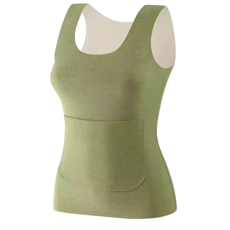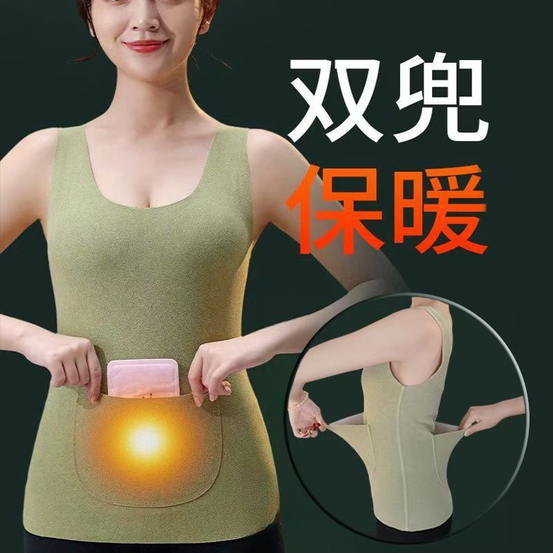 前后双兜加绒加厚保暖背心女秋冬暖宫护腰防寒修身 百搭内衣 打底衫