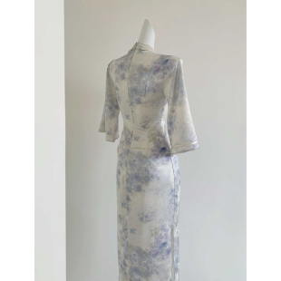 连衣裙女夏高级感开叉长裙旗袍 人丝肌理提花新中式 JKJS 幽兰影