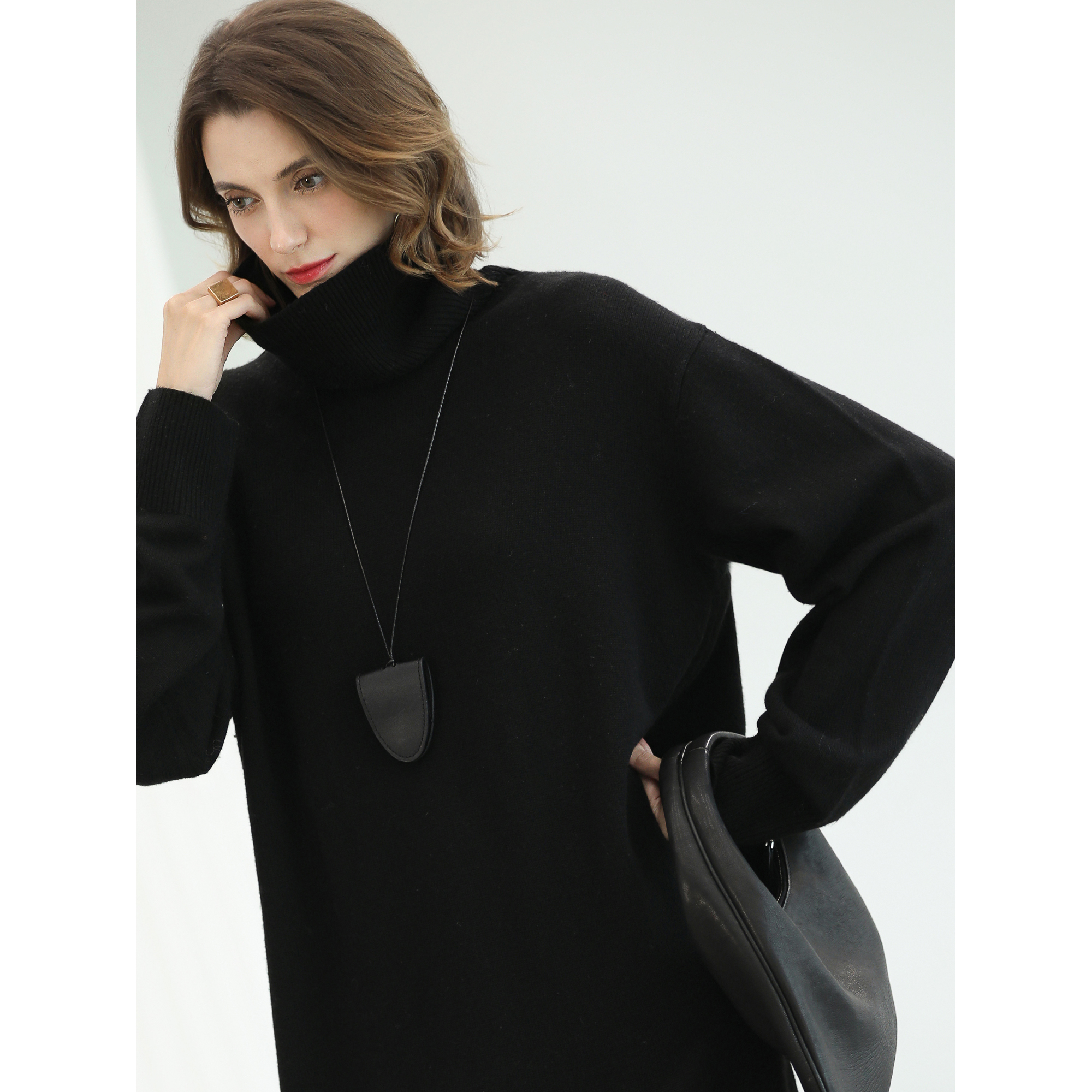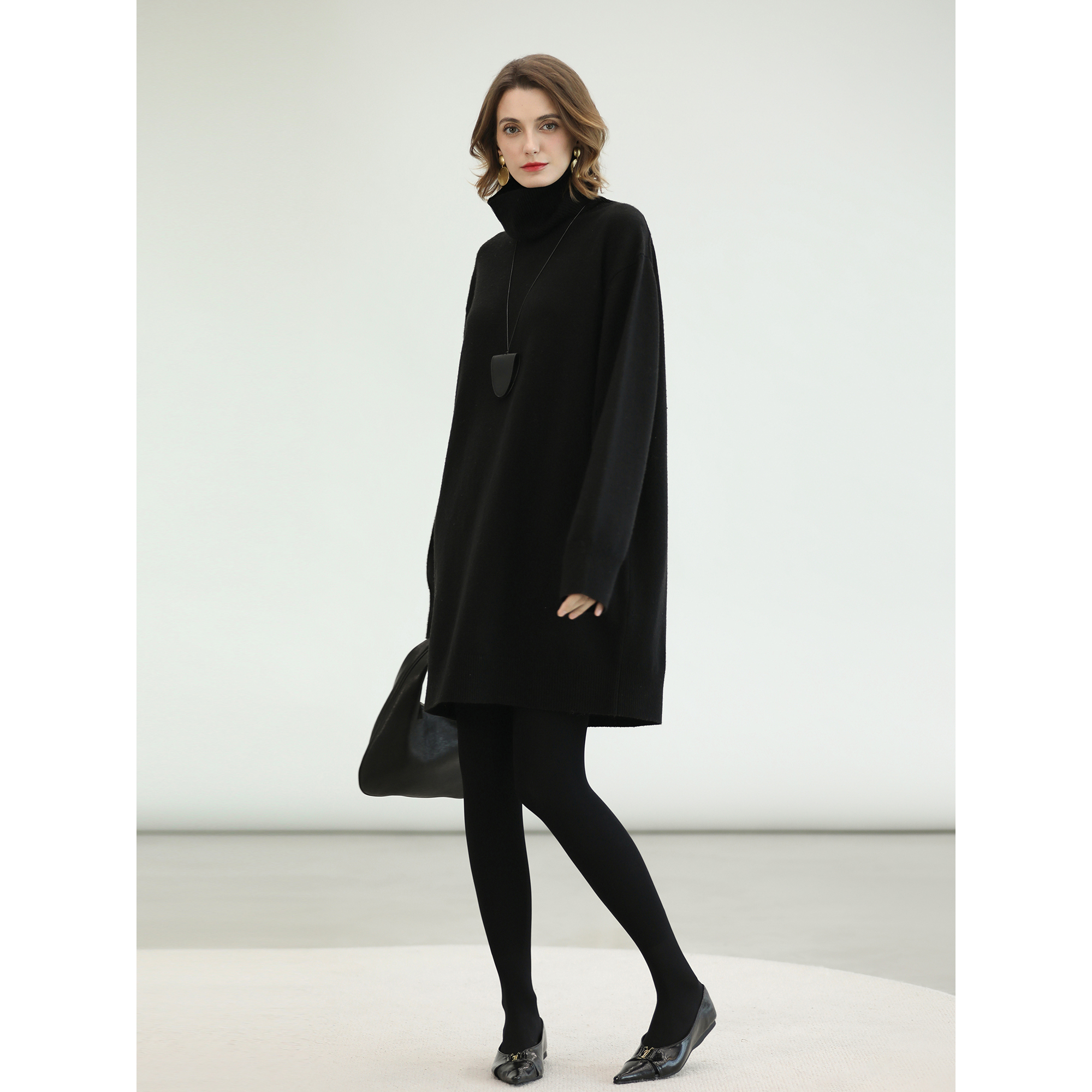 COCOBELLA高级感内搭黑色针织裙女25赫本风高领连衣裙MZ3225