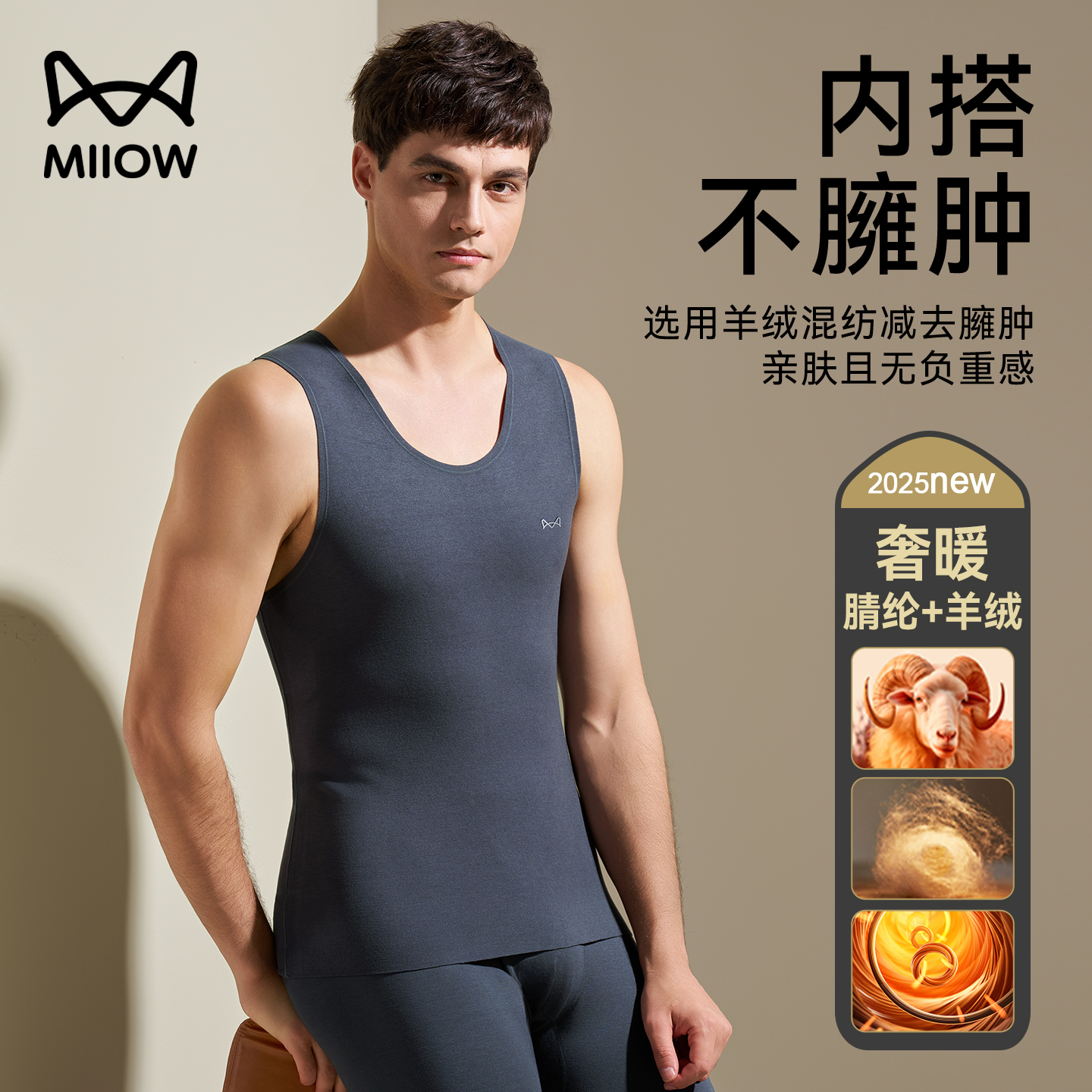 内穿打底上衣马甲内衣 无痕加绒德发热男款 猫人保暖背心男士 秋冬季