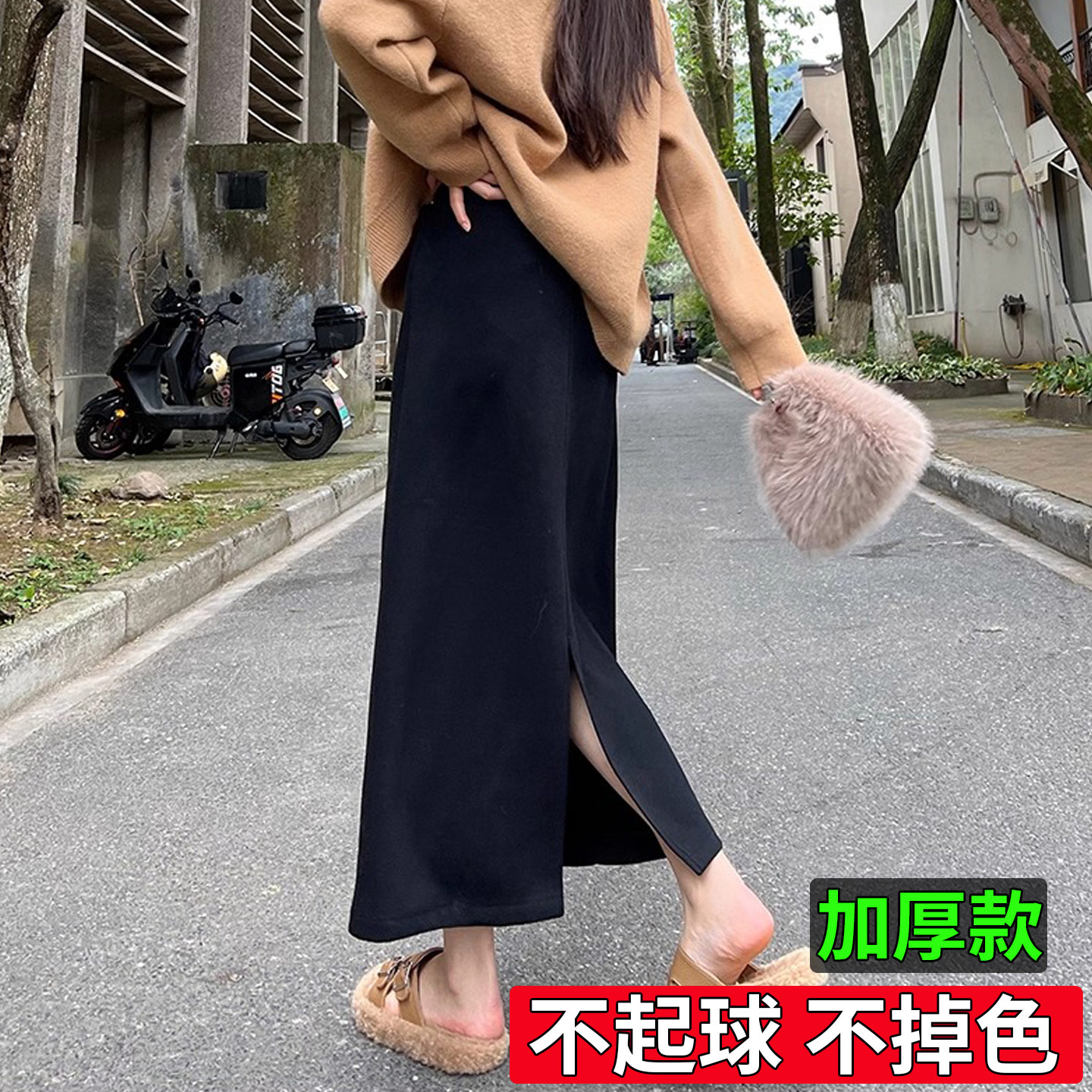 黑色毛呢半身裙女秋冬2025新款 高腰春秋a字小个子短裙气质包臀裙