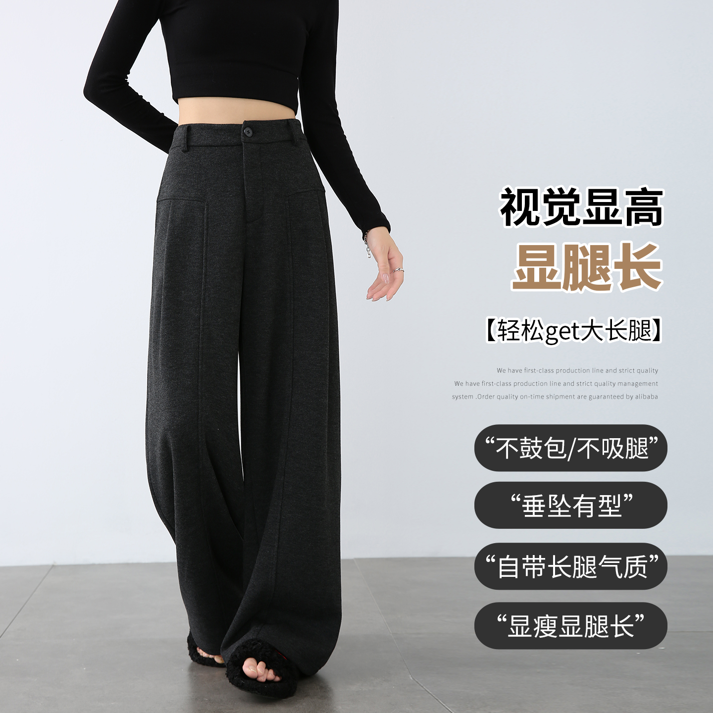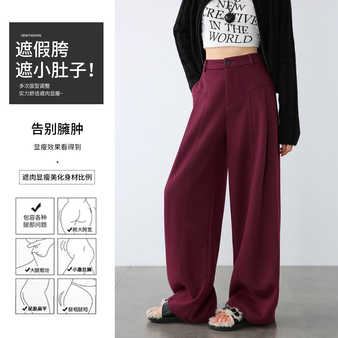 休闲加厚羊毛毛呢弯刀裤 棕色阔腿裤 宽松直筒裤 秋冬季 子 女2025新款