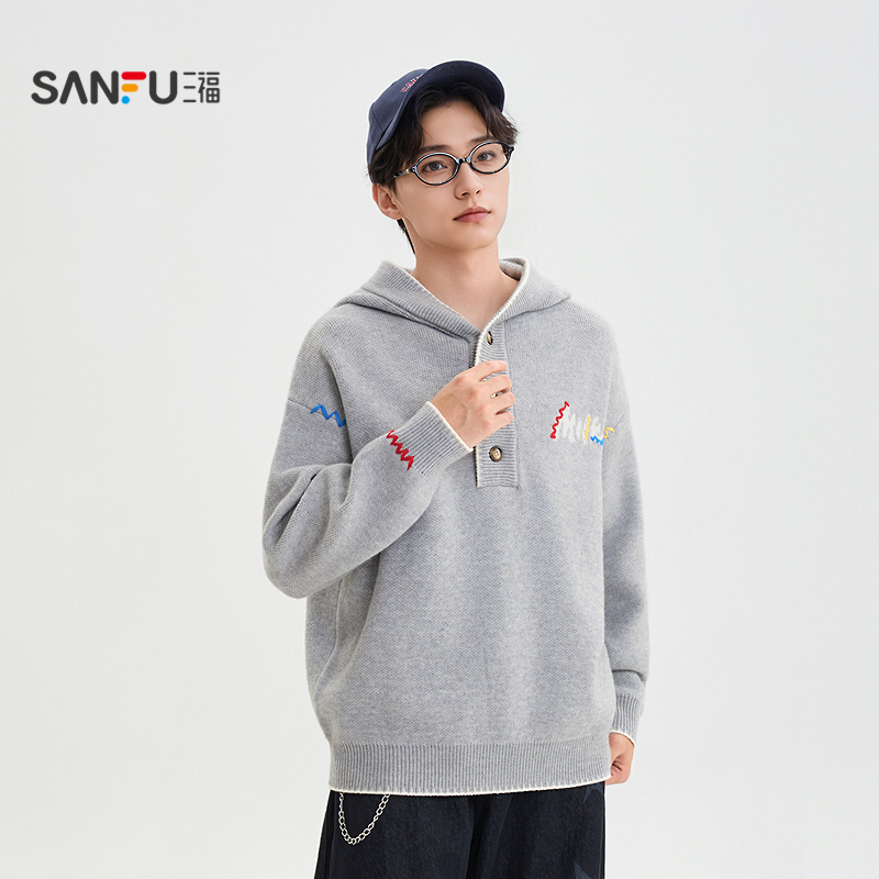 针织开衫 BOYLONDON情侣款 秋冬满印潮牌宽松毛衣N64901 贵公子