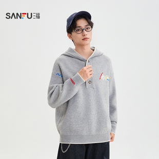 宽松休闲绣花毛衣开衫 飞鸟和新酒灰色长袖 新款 女2025秋季 针织衫