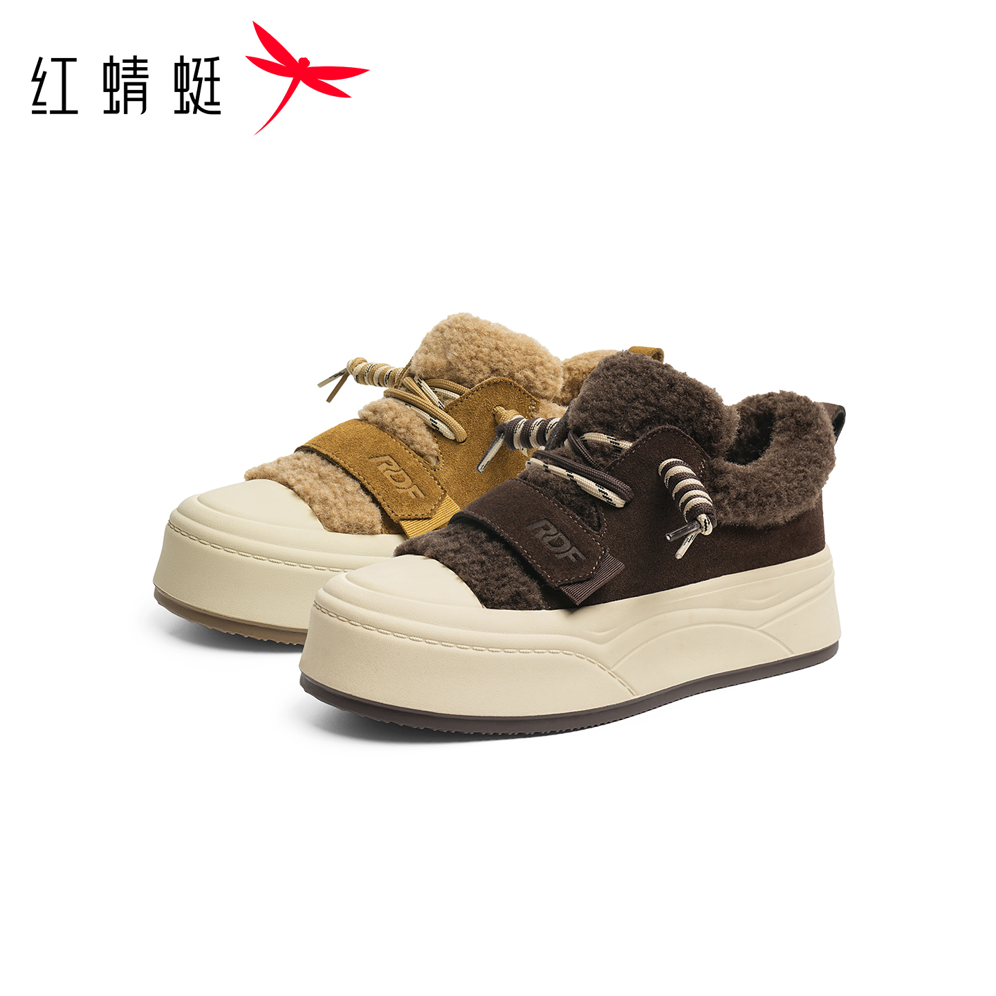 2025冬季 平底运动小白鞋 新款 舒适加绒休闲鞋 女 女鞋 红蜻蜓休闲板鞋