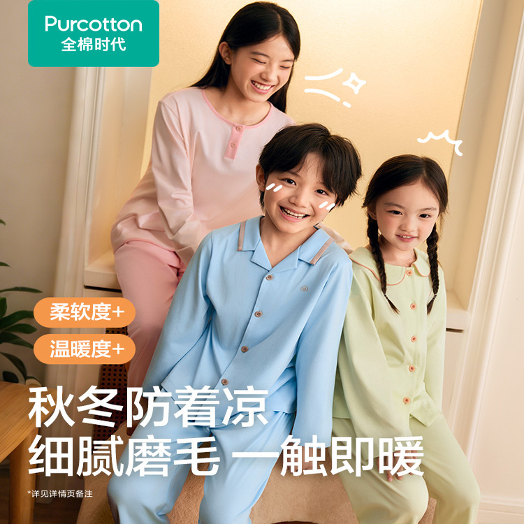 纯棉套装 全棉时代儿童水光棉家居服男女孩宝宝睡衣裤 双11预售