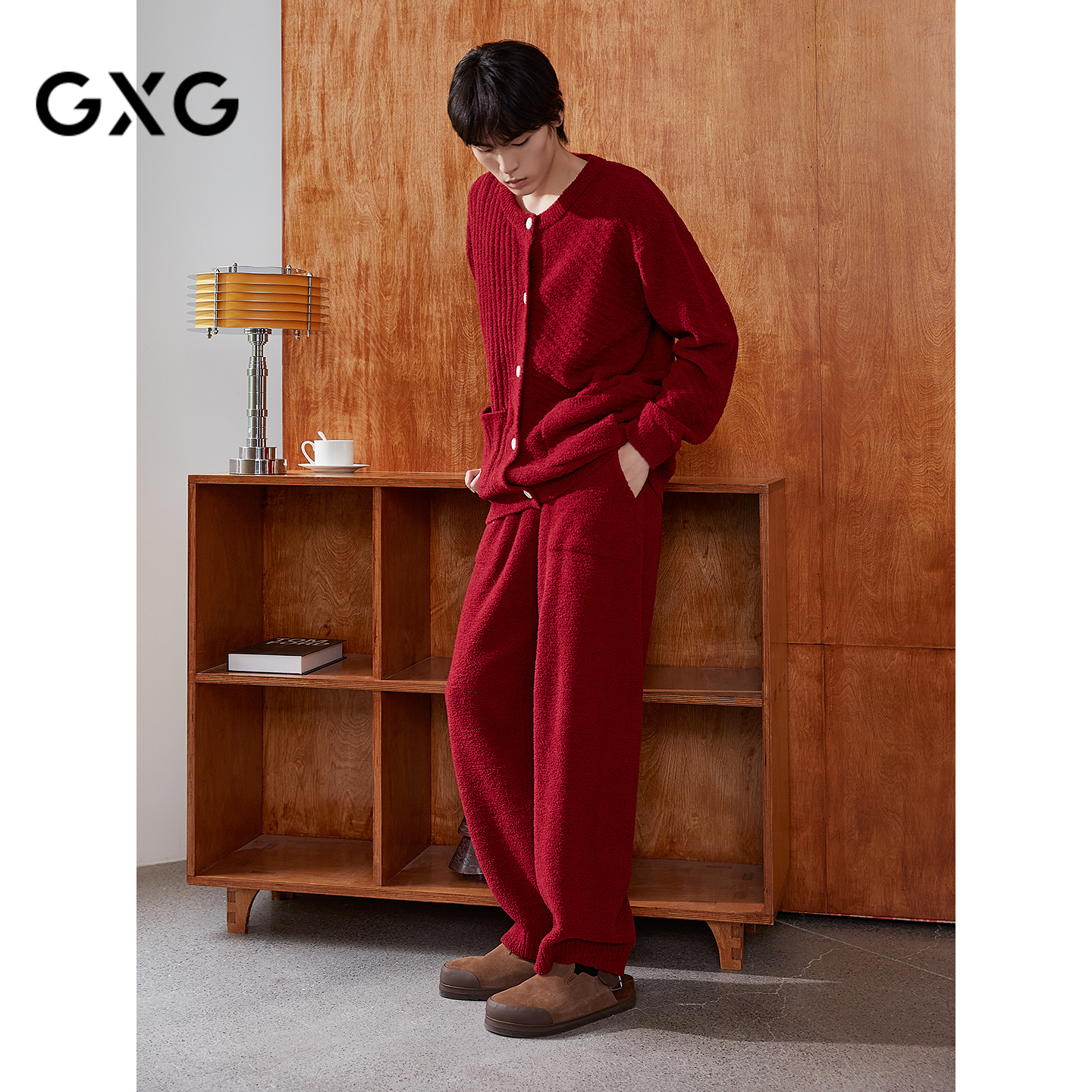 长袖 红色肌理圆领开衫 保暖舒适睡衣套装 冬季 GXG男士 款 家居服