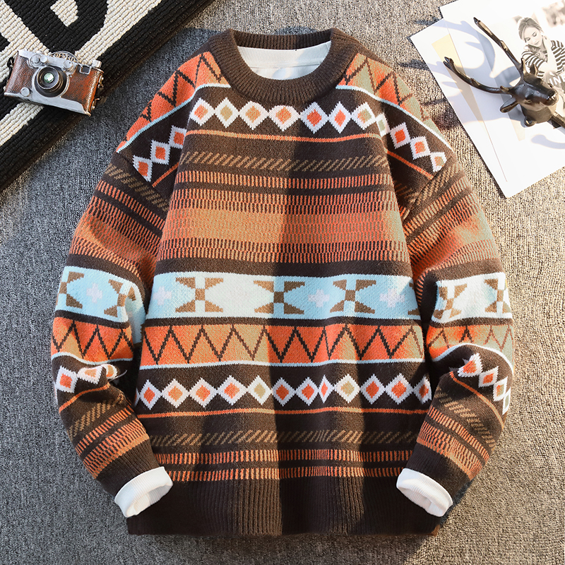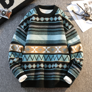复古宽松百搭青少年休闲V领打底衫 黑色假两件圆领卫衣男秋季 美式