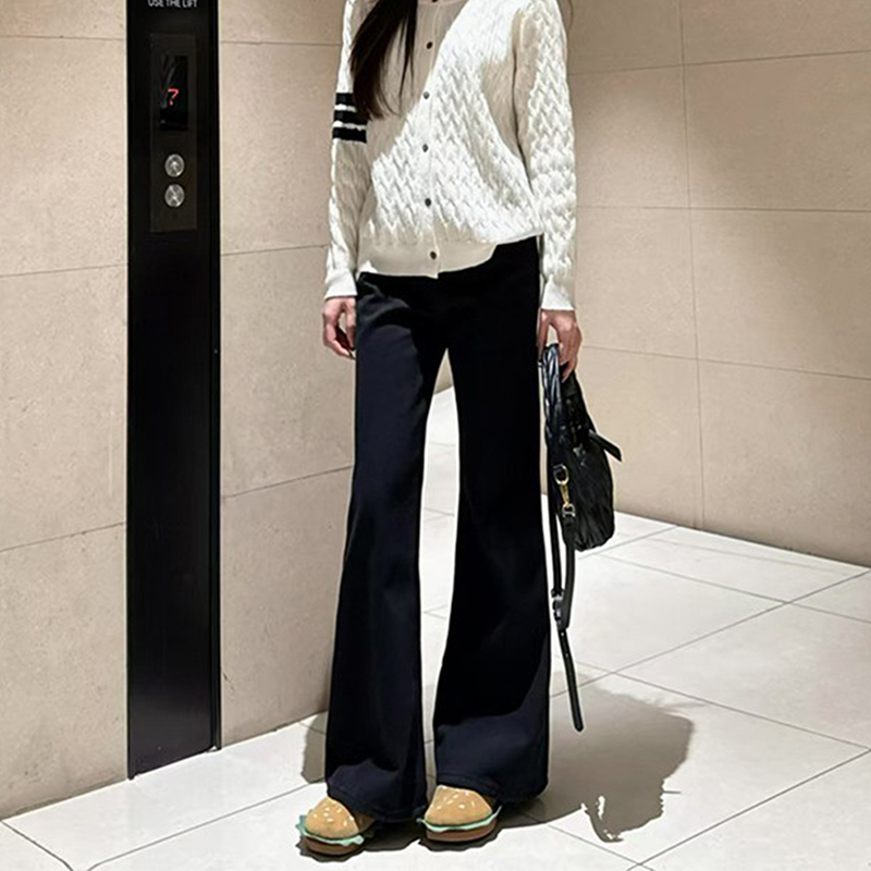 子 小个子高腰显瘦喇叭裤 黑色不贴腿微喇牛仔裤 女秋冬加绒2025新款