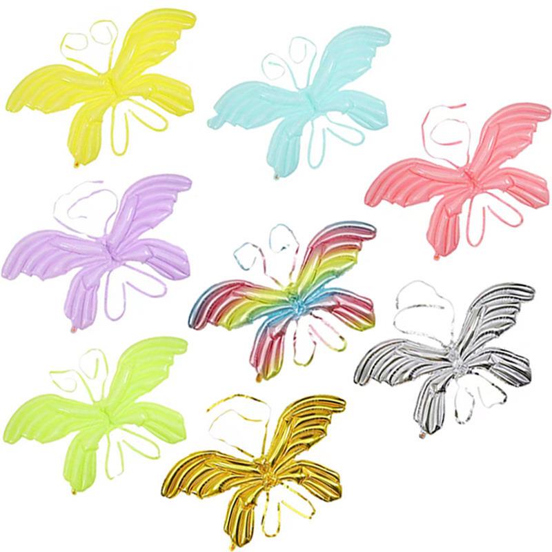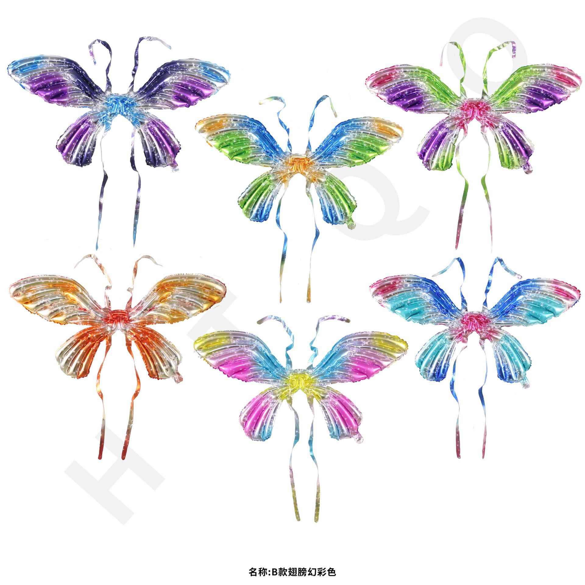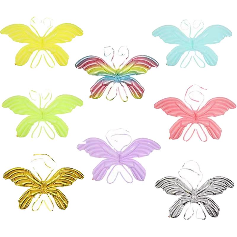 儿童充气蝴蝶翅膀背饰派对天使红结彩色铝膜摆摊学校秋游气球翅膀