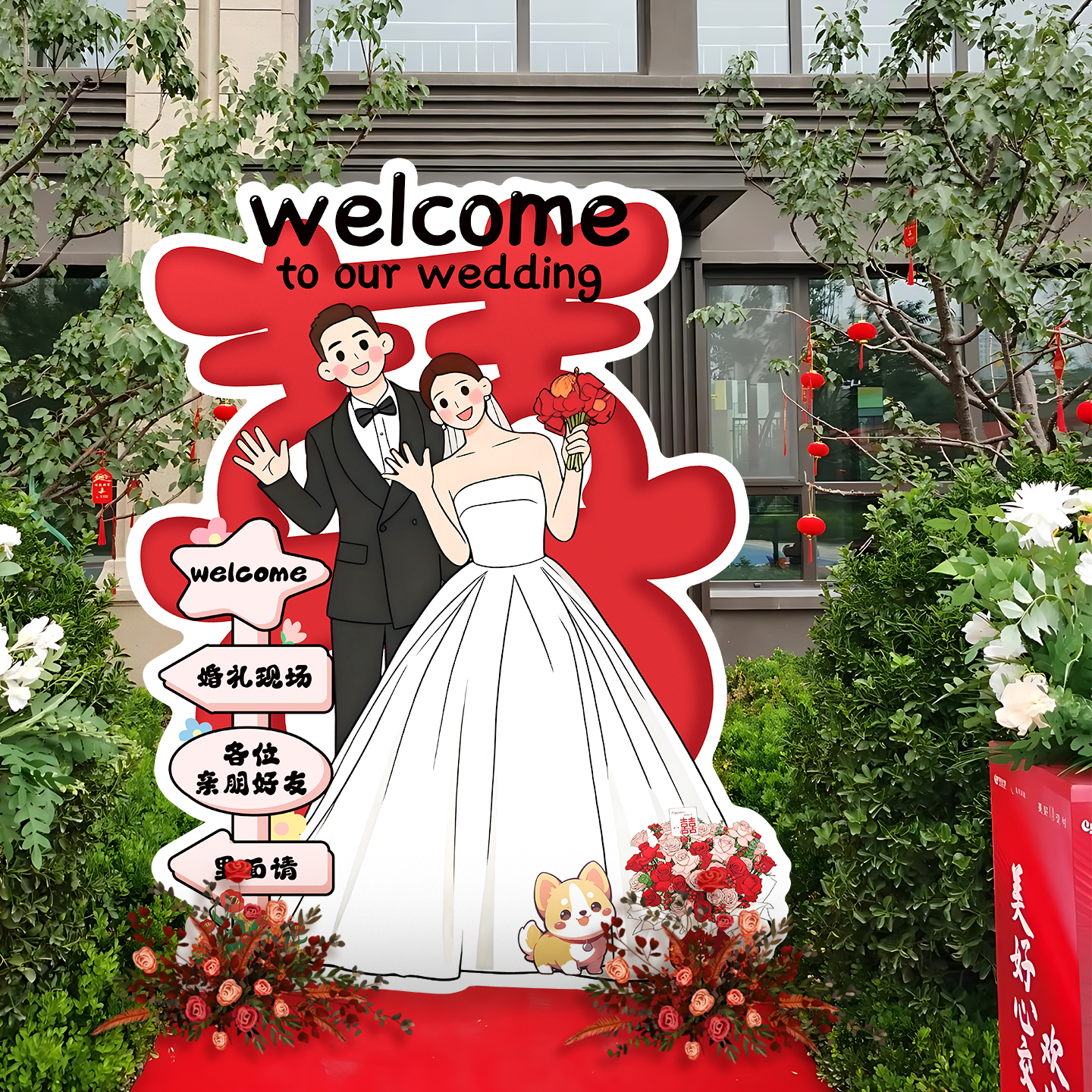 结婚迎宾牌人形立牌定制订婚布置酒店装 饰卡通漫画kt板指示牌路引