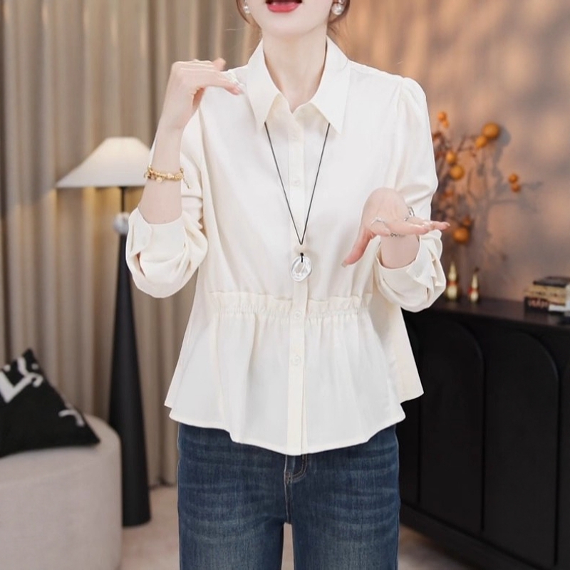 大码 女士春秋季 胖mm遮肚显瘦高级感上衣 衬衫 polo领正肩荷叶边长袖
