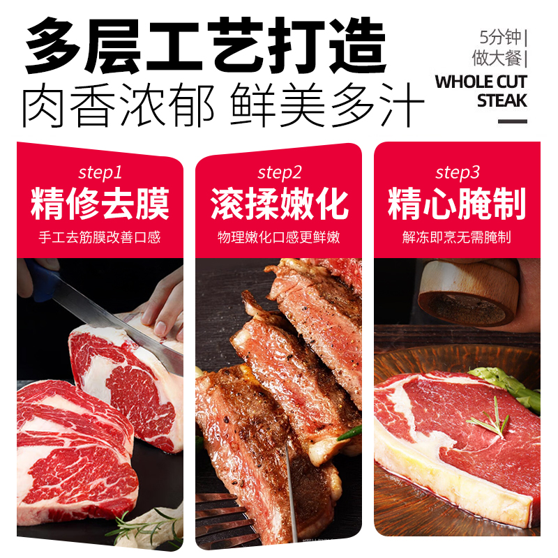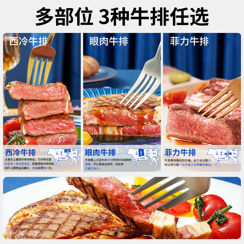 原肉整切西冷菲力牛排家庭儿童黑椒牛扒新鲜雪花牛肉扒官方旗舰店