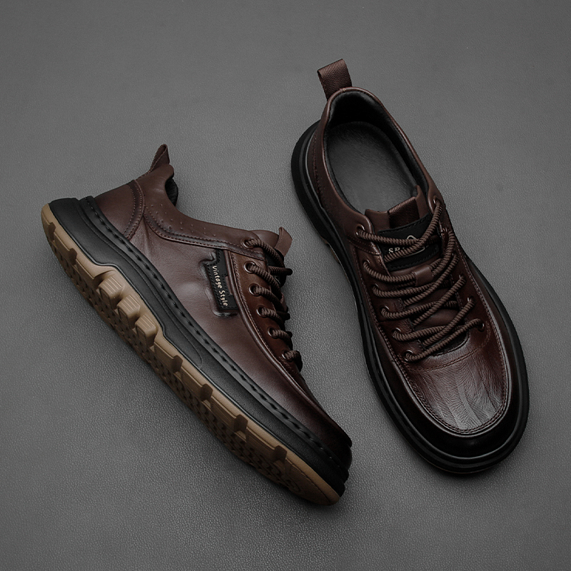2025秋冬新款 男鞋 商务鞋 增高皮鞋 子 软底休闲系带圆头正装 奥康男鞋