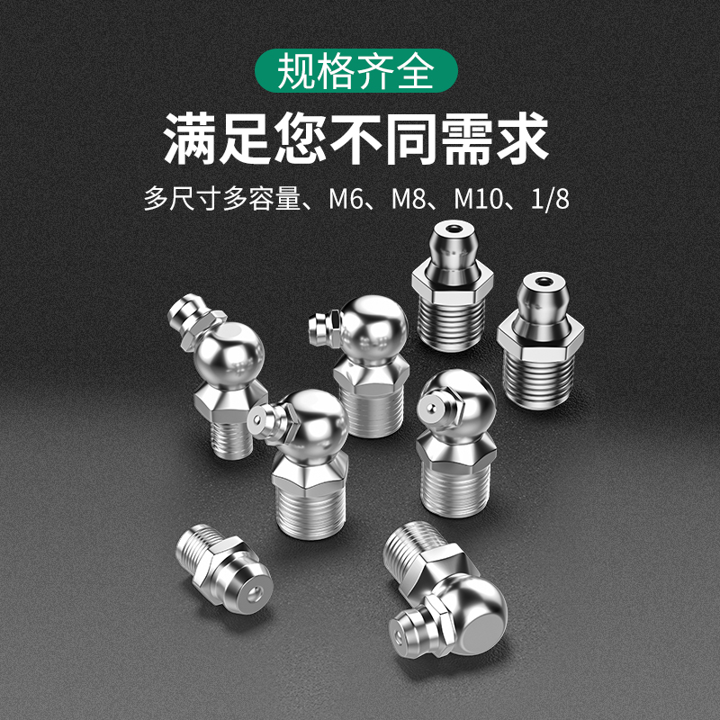 国标挖机黄油嘴头直油咀m6m8M10注油嘴接头黄油枪配件大全枪头嘴