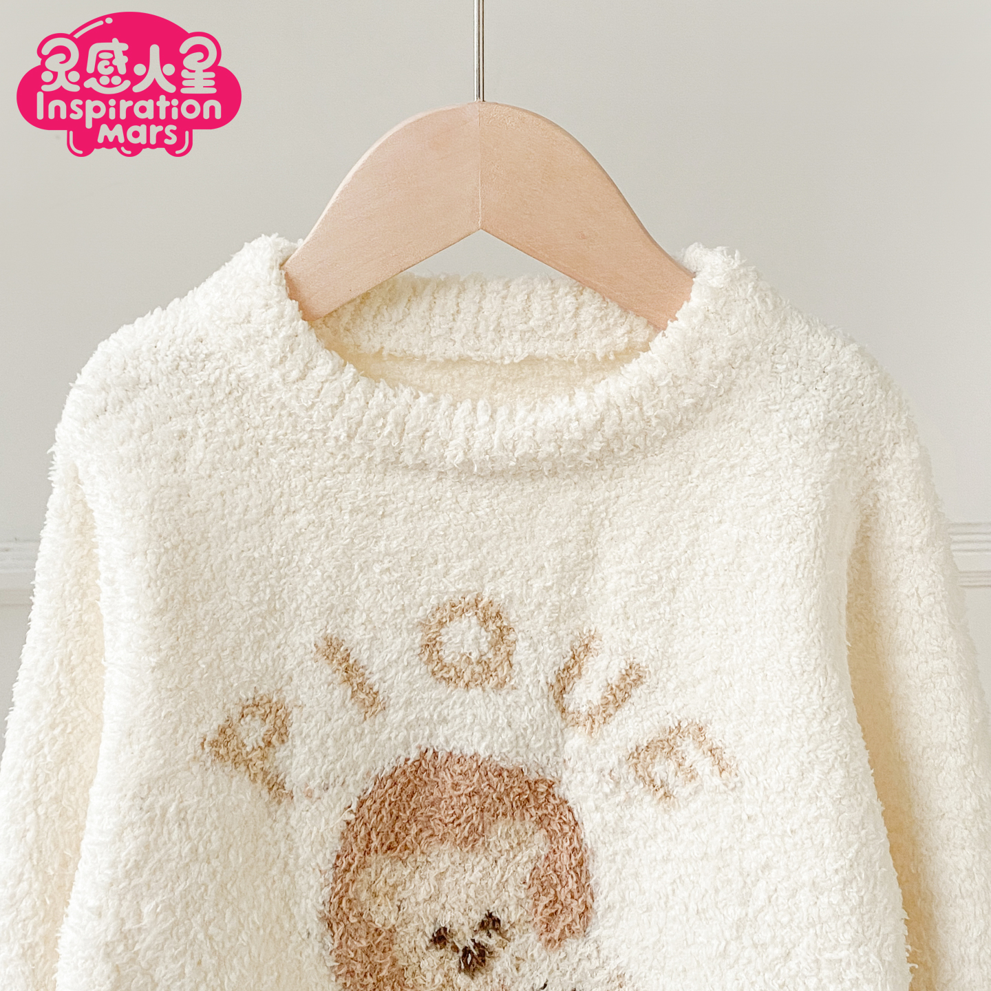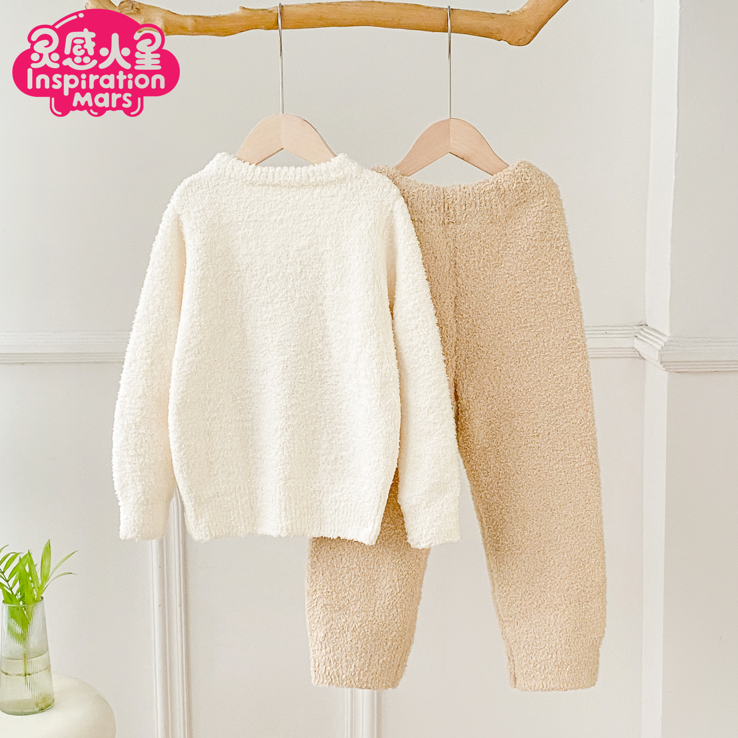 秋冬半边绒儿童睡衣女童珊瑚绒家居服套装 加绒厚 宝宝软绵绵亲子装