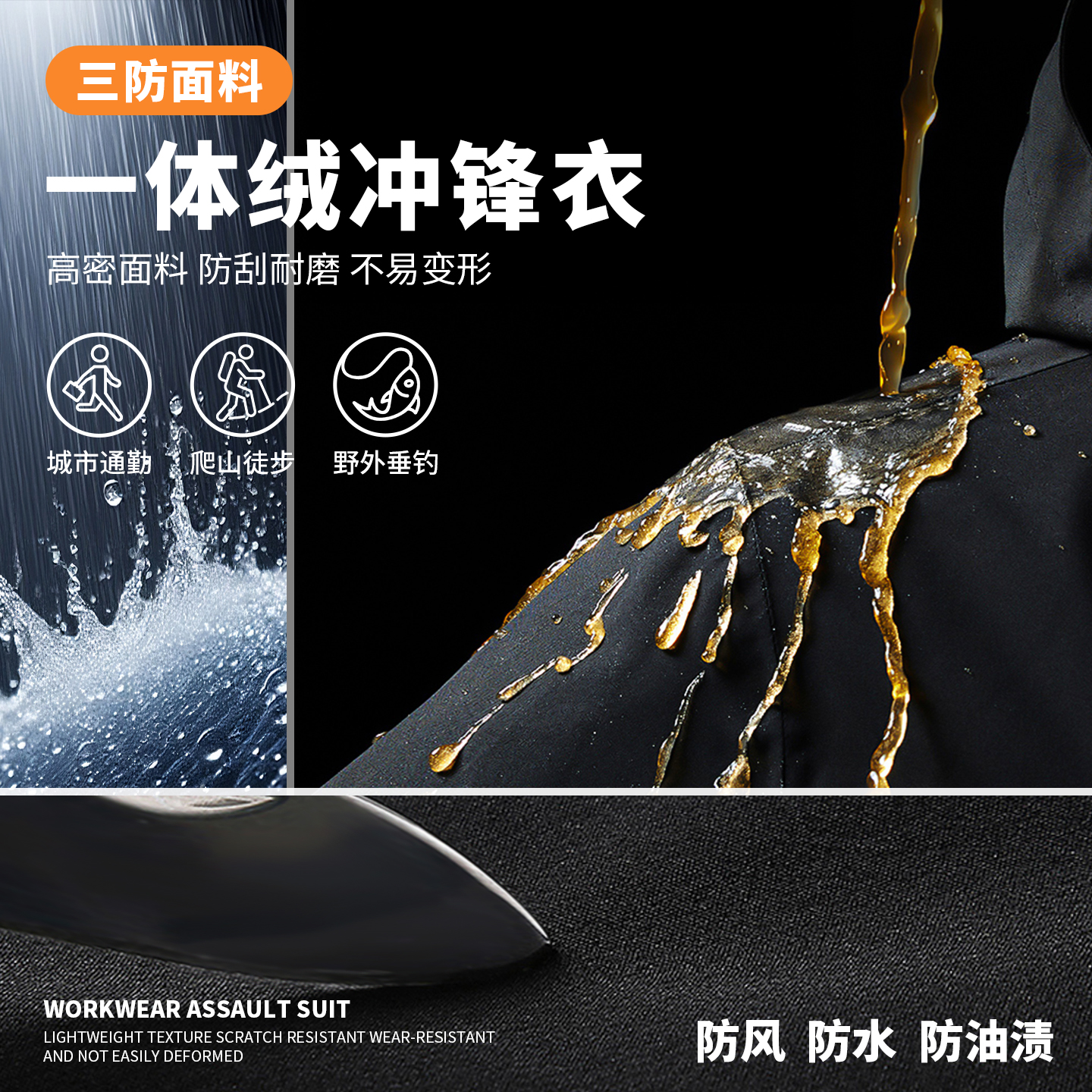 GV真维斯冲锋衣内胆男摇粒绒外套秋冬款 夹克C 加厚立领抓绒衣男款