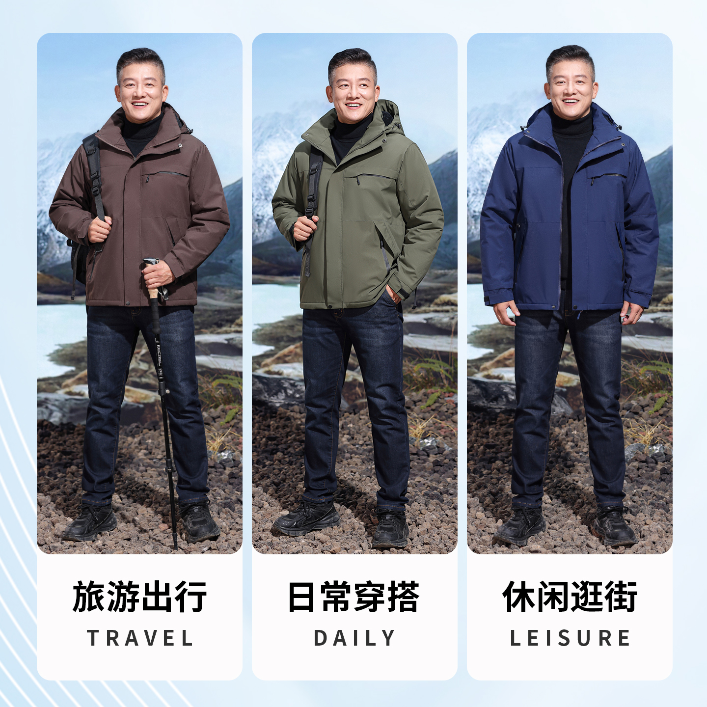 爸爸冲锋衣中老年秋冬季 三合一爷爷老年人夹克上衣服 外套中年男士