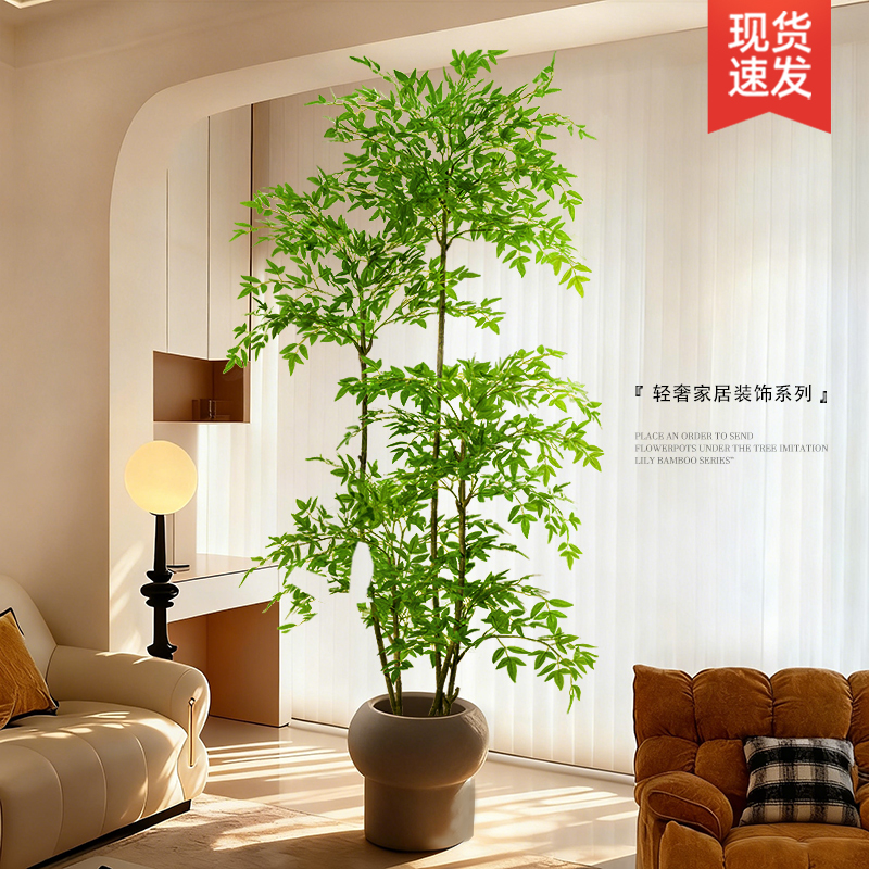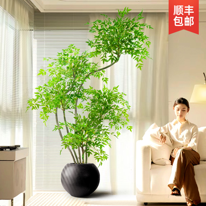 仿真绿植南天竹高端轻奢室内装 饰摆件客厅高级感假花大型植物盆栽