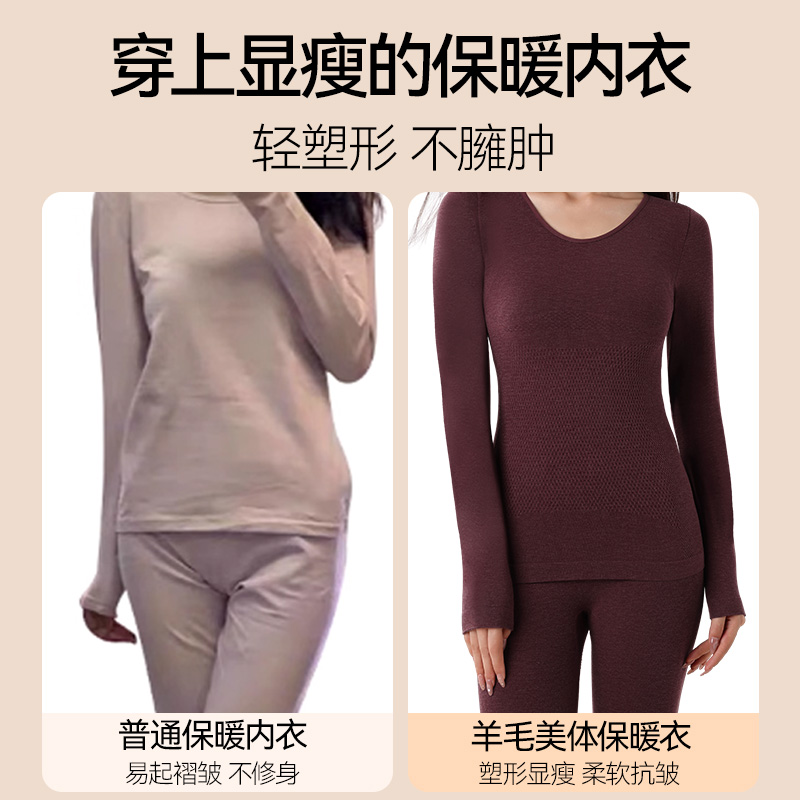 羊毛发热无痕塑形美体打底保暖内衣 女士2025新款 猫人秋衣秋裤 套装