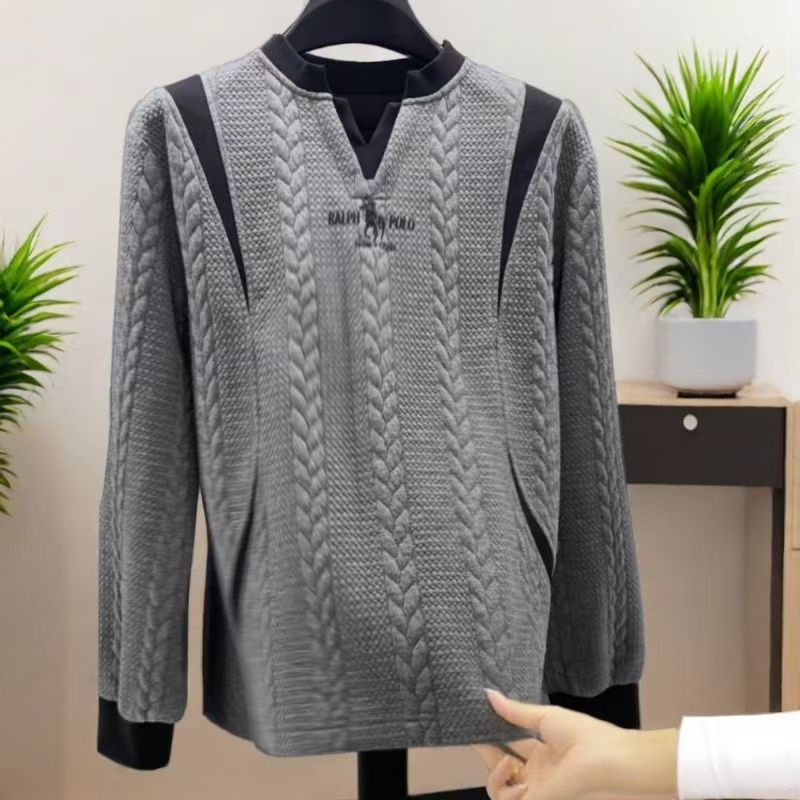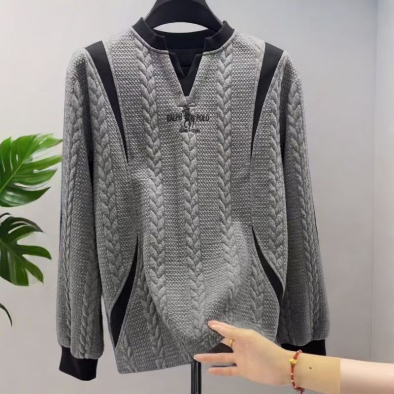 痞帅休闲高级打底衫 欧货长袖 潮牌拼色刺绣T恤衫 轻奢美式 卫衣男士