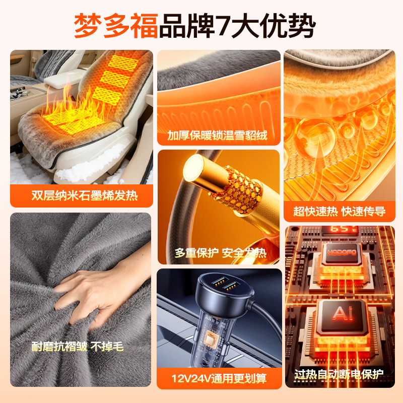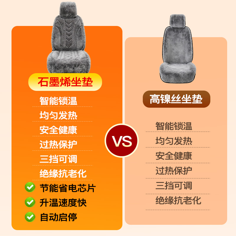 石墨烯汽车加热坐垫短毛绒冬季 车载单双座椅垫12V24V通用加厚保暖