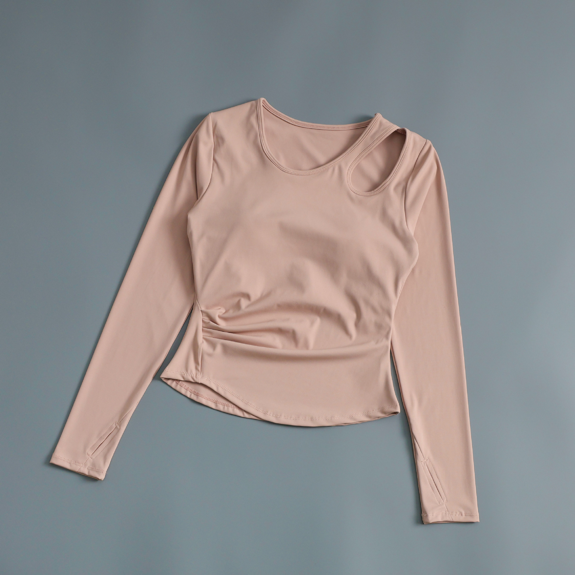 瑜伽服女带胸垫运动上衣显瘦长袖 跑步骑行普拉提训练健身房服