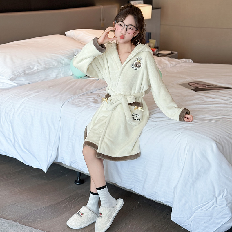 秋冬季 家居服浴袍女童睡袍公主 加厚保暖宝宝珊瑚法兰绒亲子中长款