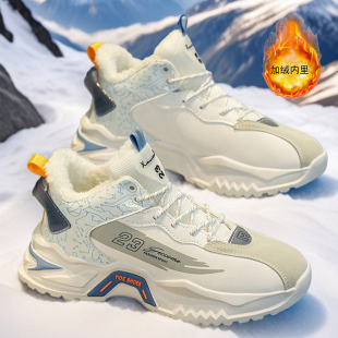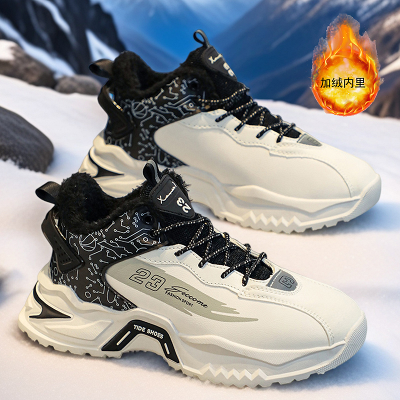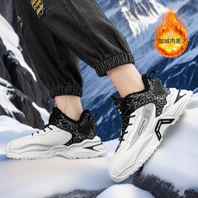防滑运动跑鞋 高帮加绒棉鞋 皮面防水学生青少年二棉鞋 男鞋 2025新款