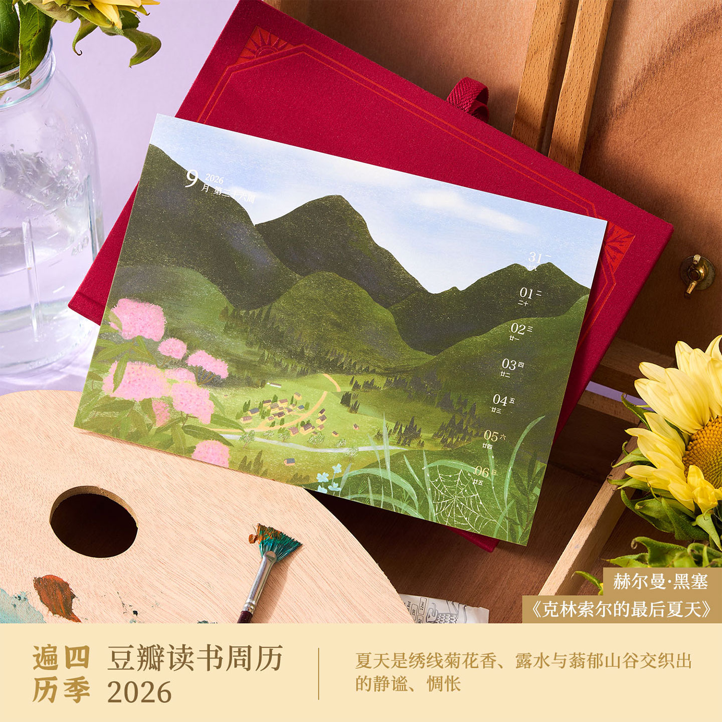诗意结合开窗式 主题每周一部世界文学片段53张原创插画色彩线条文学想象阅读与生活 结构春夏秋冬自然 四季 豆瓣读书周历2026精装