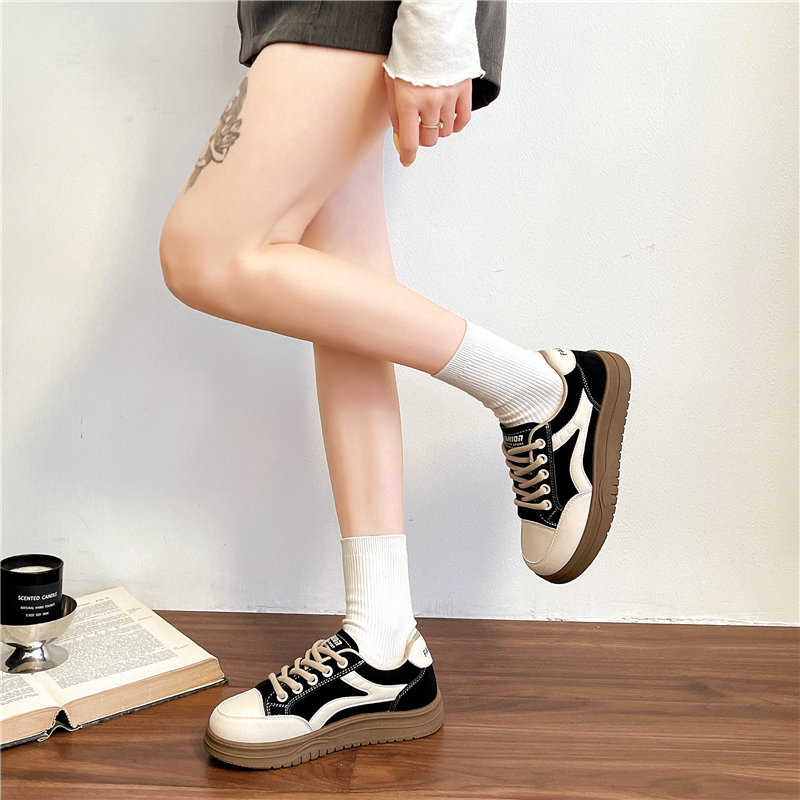 爆单黑色休闲运动板鞋 新款 女百搭春夏平厚底2025秋冬季 德训小白鞋