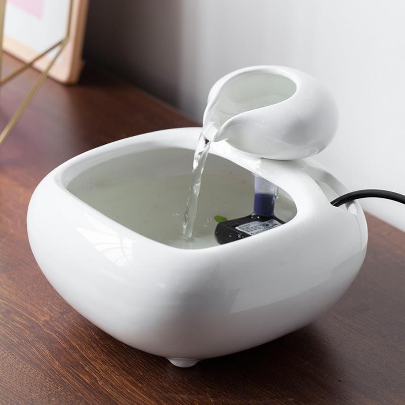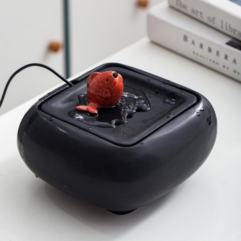 陶瓷小型喷泉流水器家居招财流水摆件循环水风水轮办公室桌面礼品