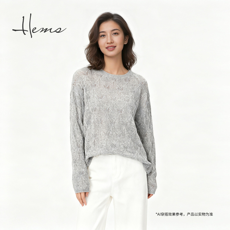 海尔曼斯25秋冬新品 D4954D41 通勤系列知性优雅气质小众圆领羊毛衫