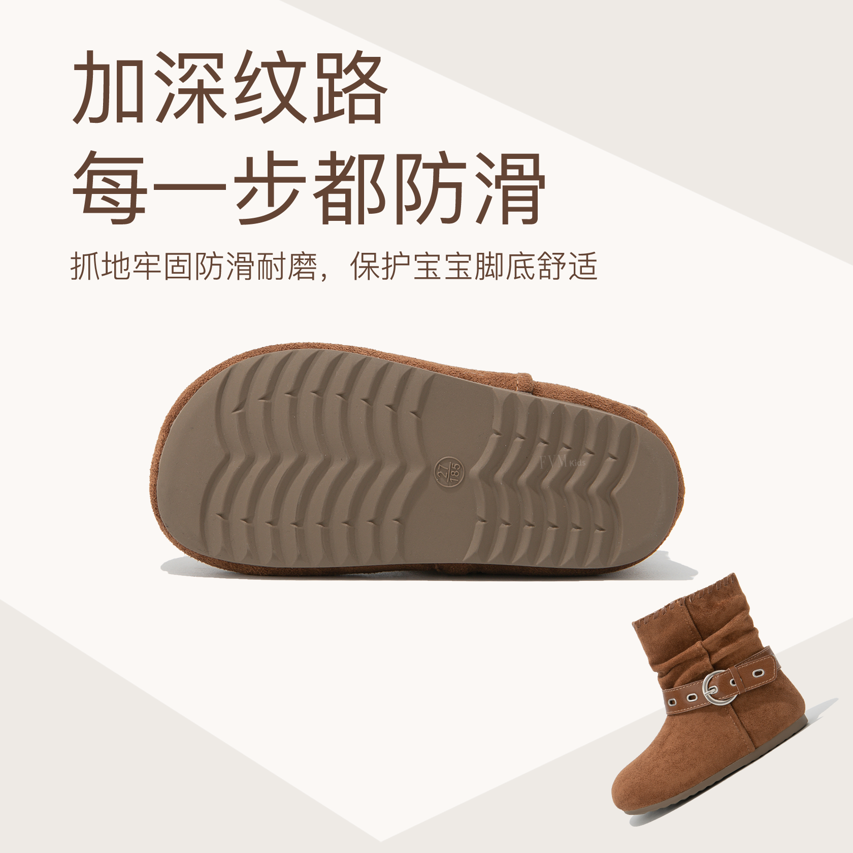 加绒软底美拉德堆堆靴 秋冬季 FVM女童鞋 子儿童马丁短靴子2025新款