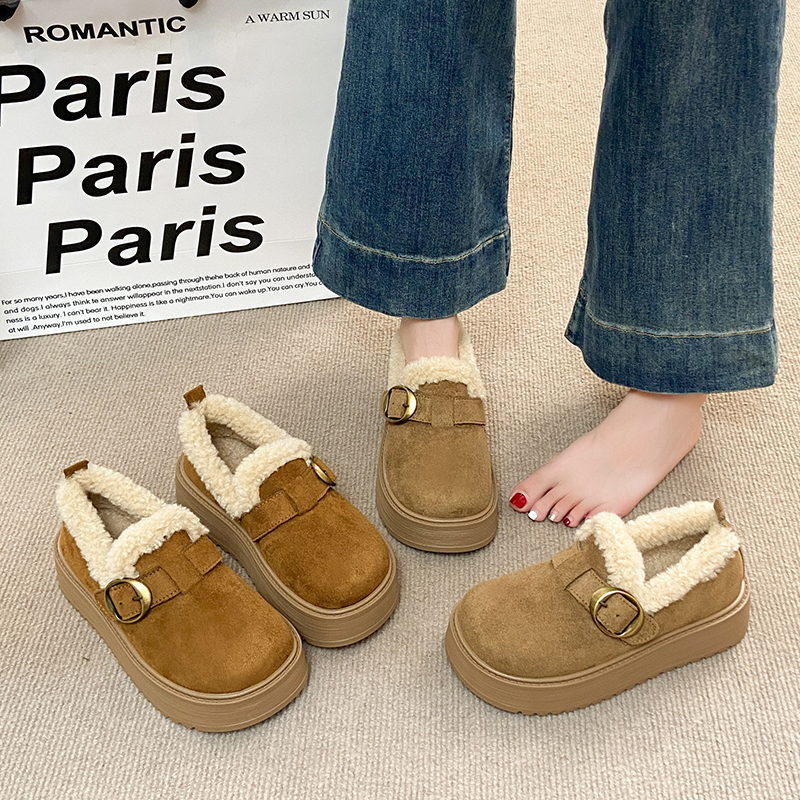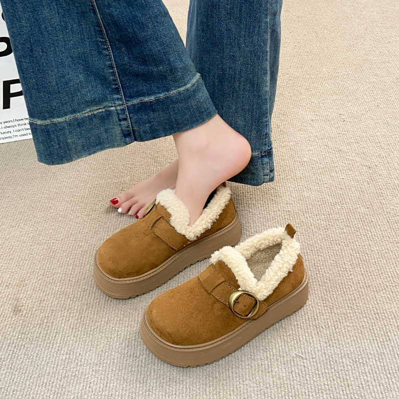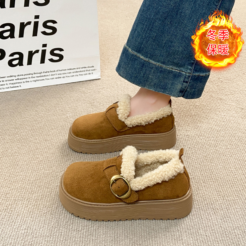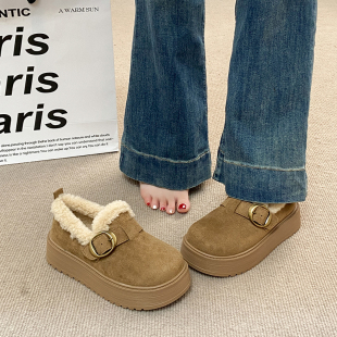 保暖加绒面包鞋 防水短筒增高棉鞋 新款 松糕厚底雪地靴女2025年冬季