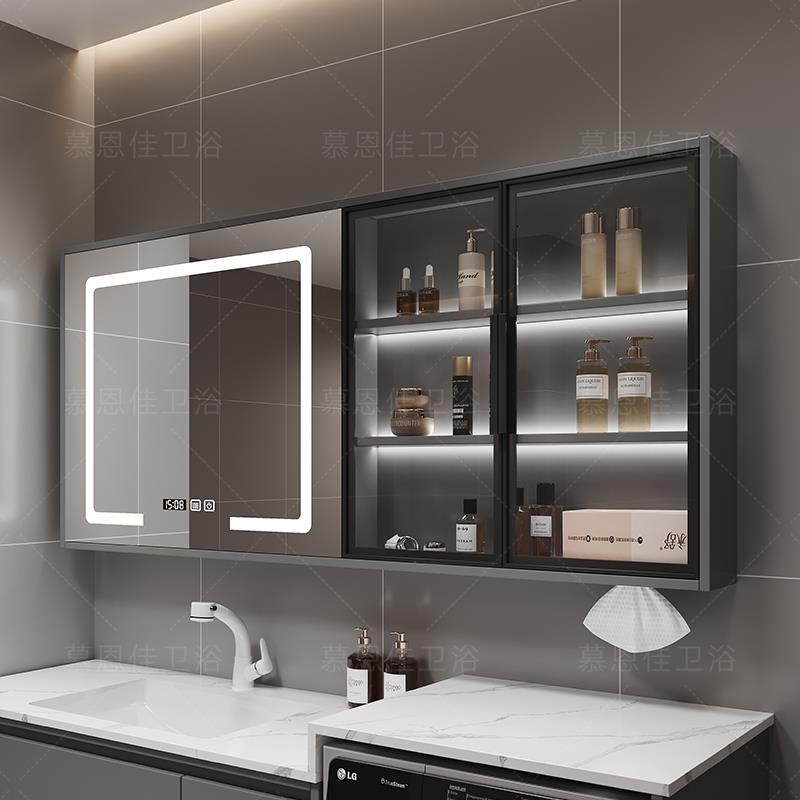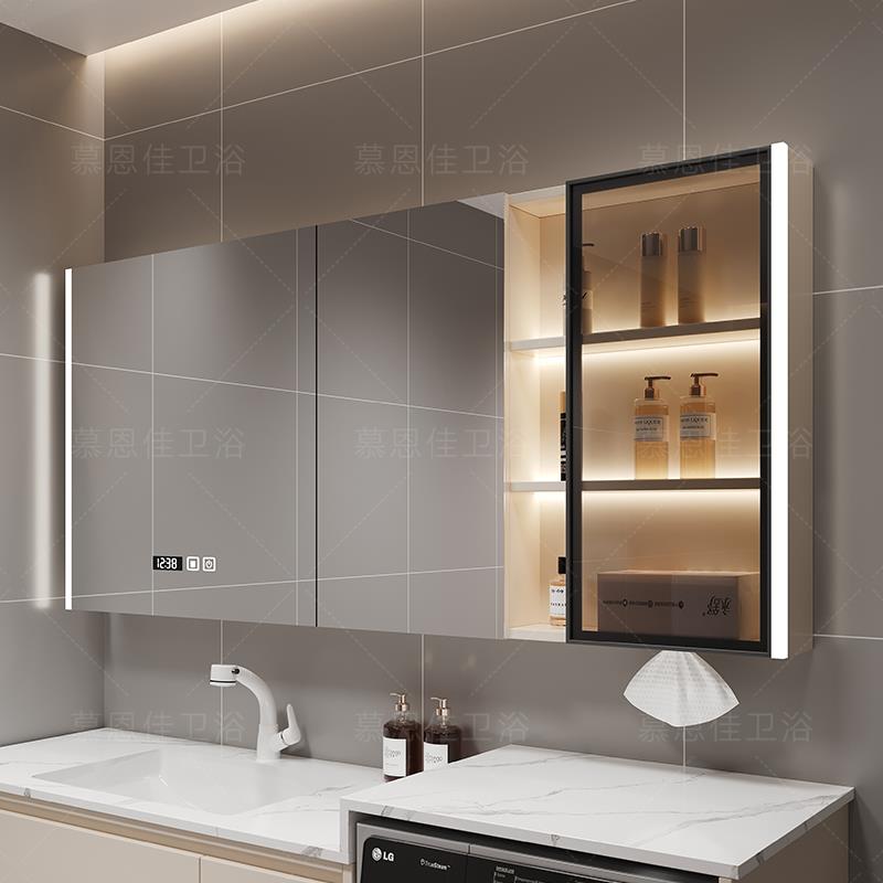 定制实木现代智能浴室单独镜柜卫生间一体收纳储物柜梳妆镜挂墙式
