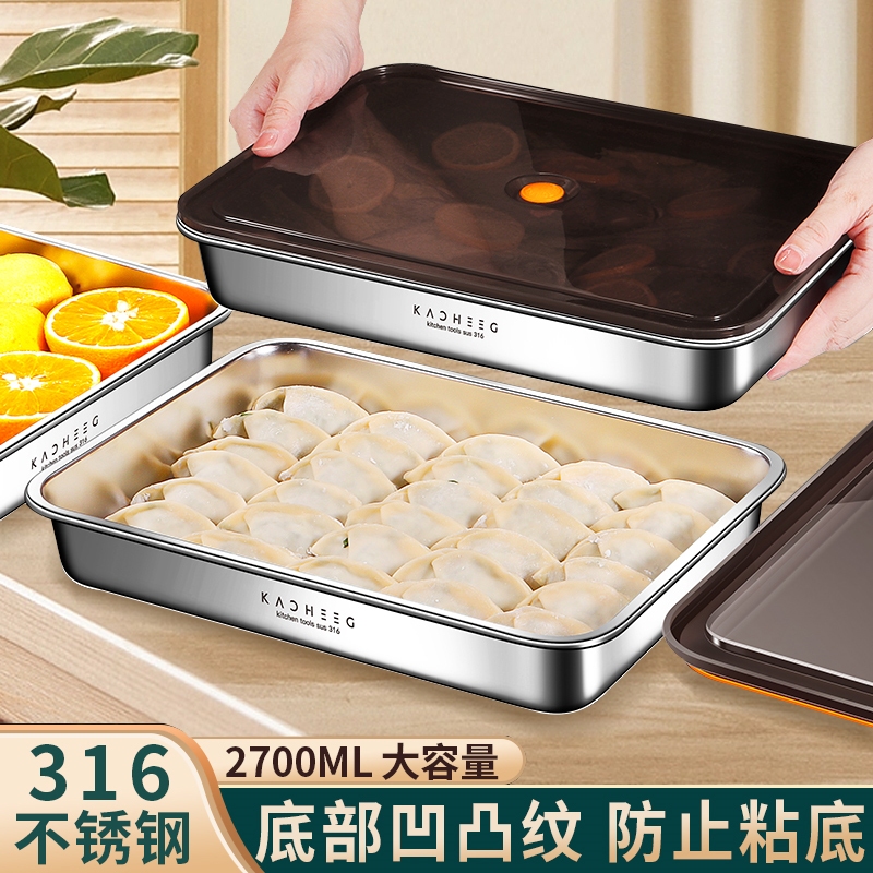 德国饺子收纳盒冰箱用不锈钢食品级储物盒馄饨水饺速冻保鲜盒