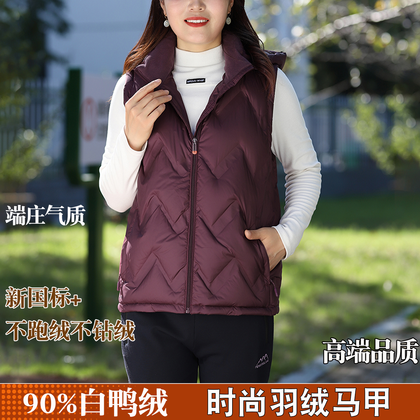 白鸭绒90马夹中老年端庄气质高保暖背心 羽绒马甲女冬款 时尚 妈妈装