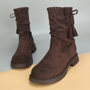 超火厚底棕色裤 秋季 管靴骑士马丁靴 2025年新款 环球美拉德短靴女款