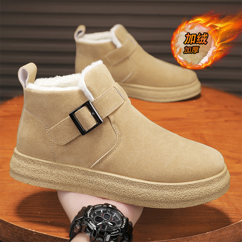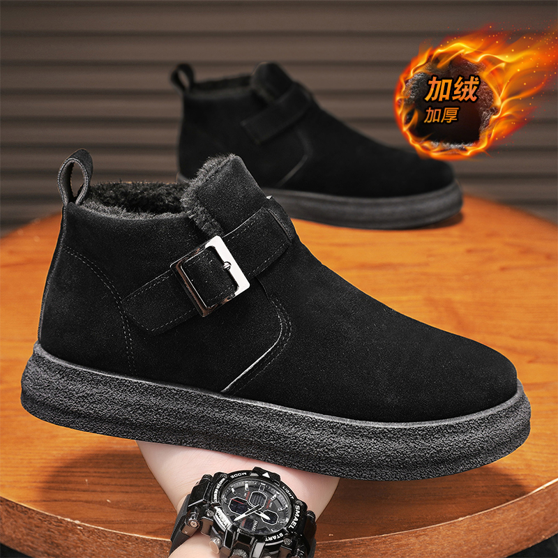 加绒保暖皮毛一体懒人一脚蹬东北面包雪地棉靴 冬季 棉鞋 男2025新款