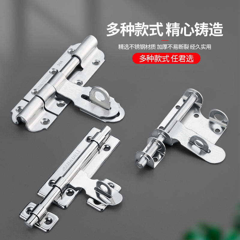 304不锈钢插销门锁扣木门窗卫生间防盗加厚门栓门扣明装 插销左右