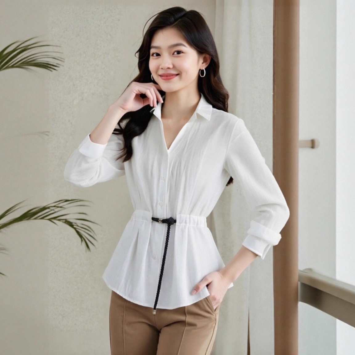 白衬衫 七分袖 职业气质工作服上衣高级女士长袖 新款 白色衬衣女工装