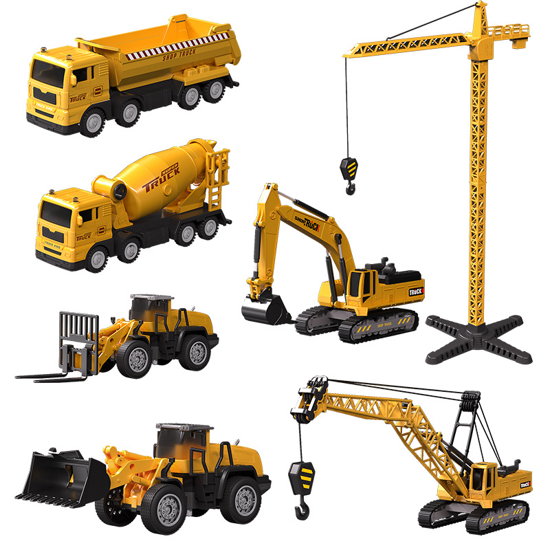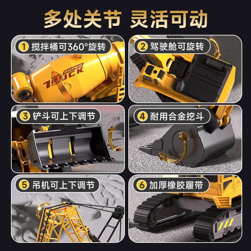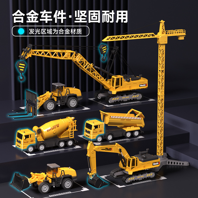 吊机车玩具车儿童合金工程车挖掘机套装 4男孩模型推挖土搅拌
