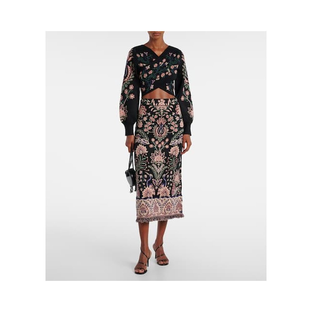 复古提花高腰显瘦开叉半身裙 国风盘扣包臀裙女夏季 大码 黑色新中式