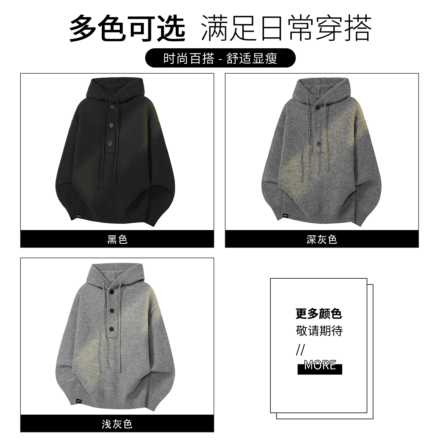 针织毛衣男士 FIVECM黑色三粒扣连帽长袖 2025秋冬百搭上衣 5cm